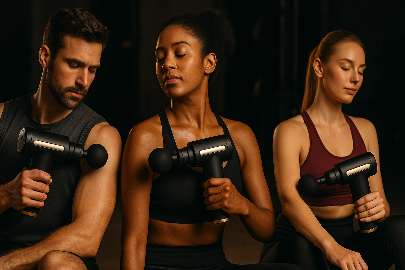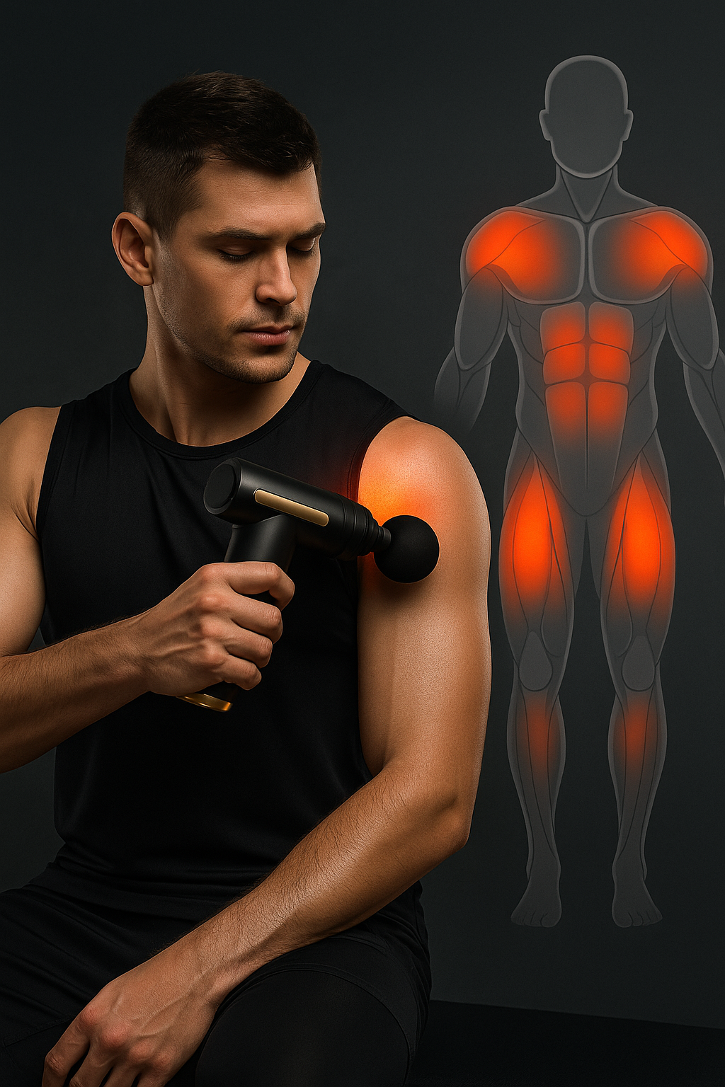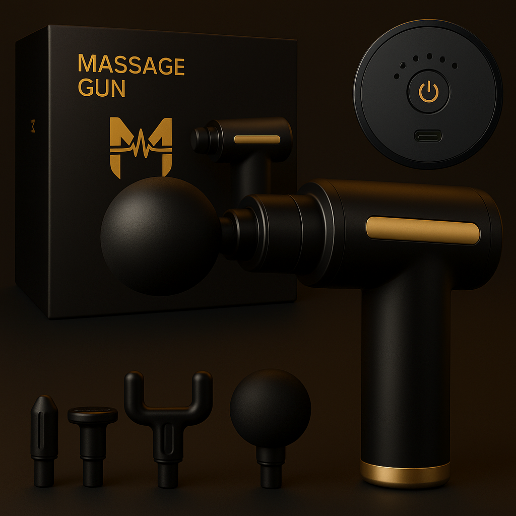 Experience deep muscle relief with the Musclenik™ Massage Gun — engineered for athletes and designed for performance. Its sleek matte-black body and gold accents embody power, control, and luxury in every motion.